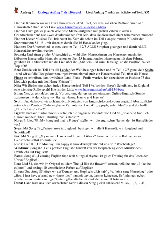 Fin: Mit Song 80 „My name is Hanna and I live in Lübeck“ lernen wir, uns im Rahmen einer