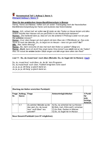 Hanno: „Cool, dann fangen wir doch gleich mit dem Üben der 2 Pflichtlieder an. Das erste