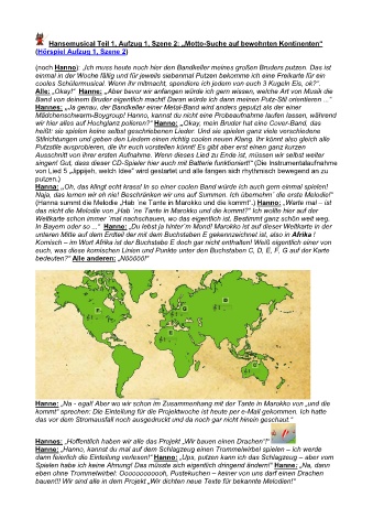 Alle: „Okay!“ Hanne: „Aber bevor wir anfangen würde ich gern wissen, welche Art von Musik die